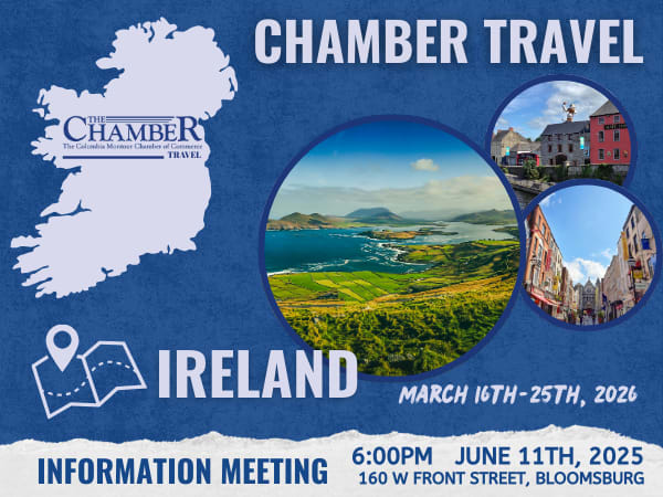 Join us June 11th to learn about the Chamber's new program 'Chamber Travel'. We will be taking our inaugural trip to Ireland in March of 2026.