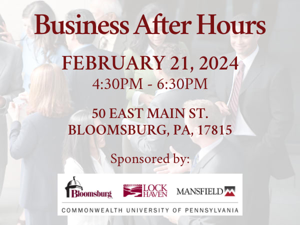 Join the Chamber and Commonwealth University - Bloomsburg Campus at the Greenly Center in downtown Bloomsburg! This event will connect the university and ZIPD students with local businesses.