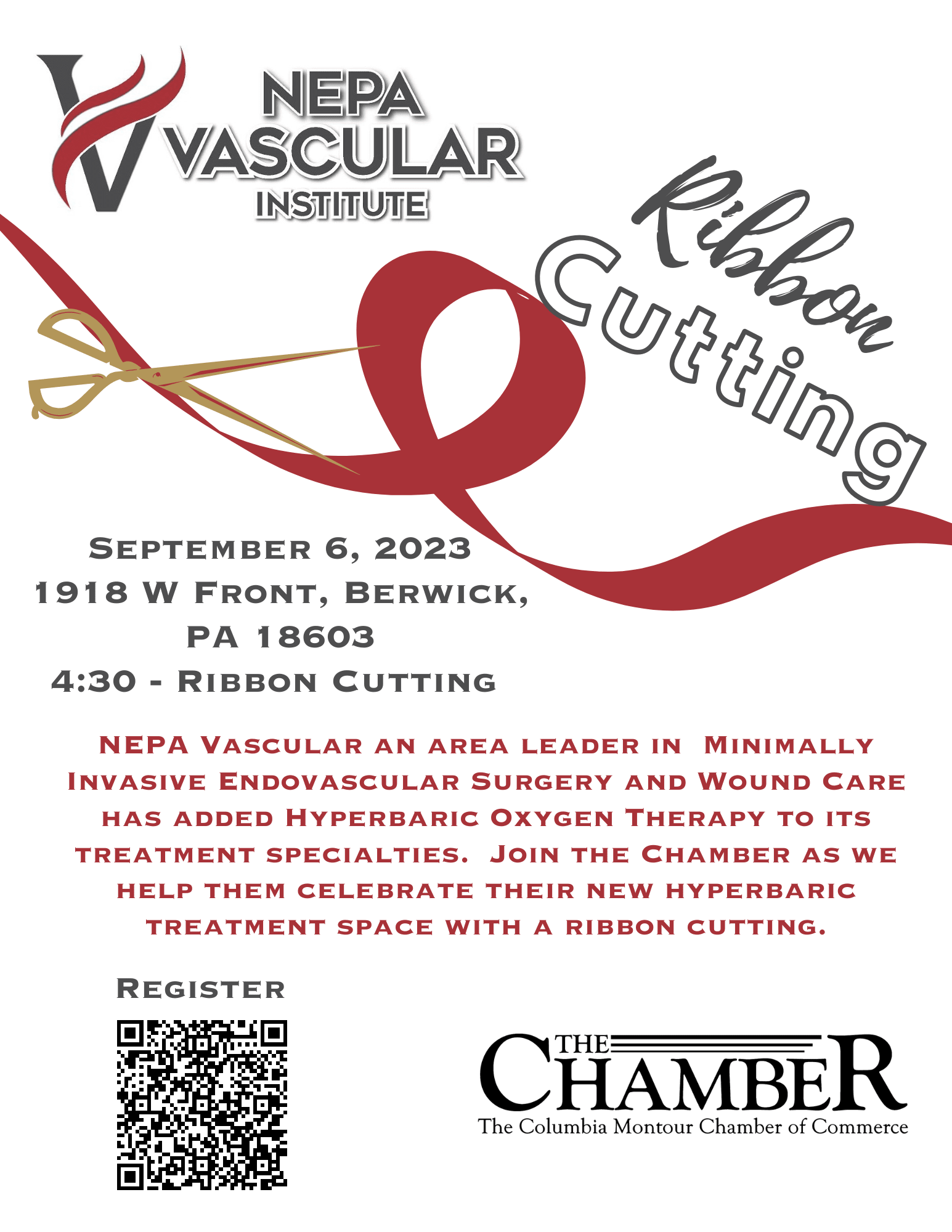 NEPA Vascular an area leader in Minimally Invasive Endovascular Surgery and Wound Care has added Hyperbaric Oxygen Therapy to its treatment specialties. Join the Chamber as we help them celebrate their new hyperbaric treatment space with a ribbon cutting at 4:30 as part of their open house which begins at 3:00 pm.