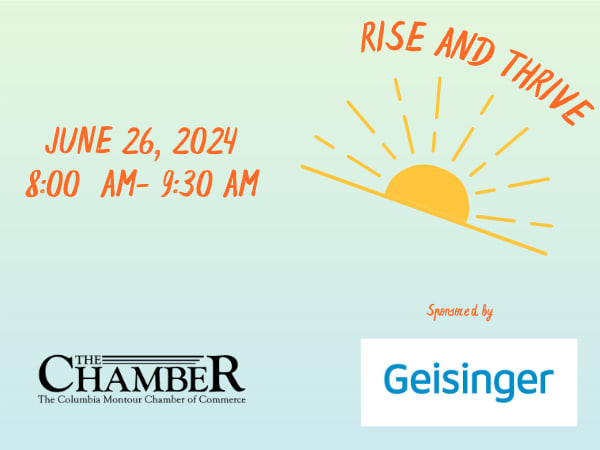 Join your peers for our wellness-themed Rise & Thrive: Walk and Talk with a Doc. Lace up your walking shoes as we walk from the Chamber office (160 W. 6th St., Bloomsburg) to the Bloomsburg Area YMCA for an opportunity to connect with Geisinger, and learn from Aaron Stagliano from McKonly & Asbury. The Rise and Thrive Series is a partnership with Geisinger to bring personal wellness and business together in a small group environment.